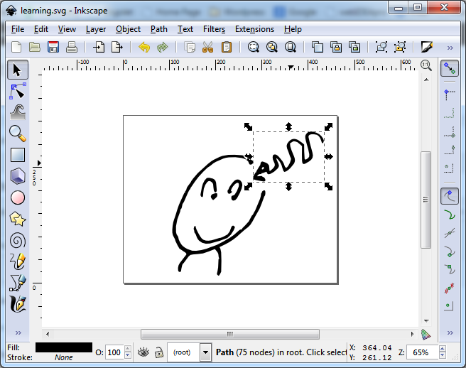 A simple process to turn a hand drawn sketch into a vector image than can be later edited, reused in other drawings. Vector drawings are also sharper and can be displayed perfectly on every screen resolution. They can be zoomed and stay readble. Now days most graphics and icons are designed as vector strokes and saved in svg. SVG pictures as part of web pages or applications can be styled using stylesheets (css), have links to other documents or animations in javascript. All things bitmaps pictures can’t have. So the process has a cost but benefits are also present. 1) Do a simple sketch with a black pen and a white paper. Keep it very simple, outlines. 2) Scan it un png. Don’t use jpeg or tiff. Jpeg would loose the precise borders, tiff would onely keep black and white and this creates very complex borders. Hint: If use Kneaver Tray this is Note: the pic is taken from my idea library and represents learning as knowledge getting in one’s head. Guess how Self Directed Learning is represented. 3) Start Inkscape on the file 4) use POTrace 5) Place colors (optional) 6) save in svg